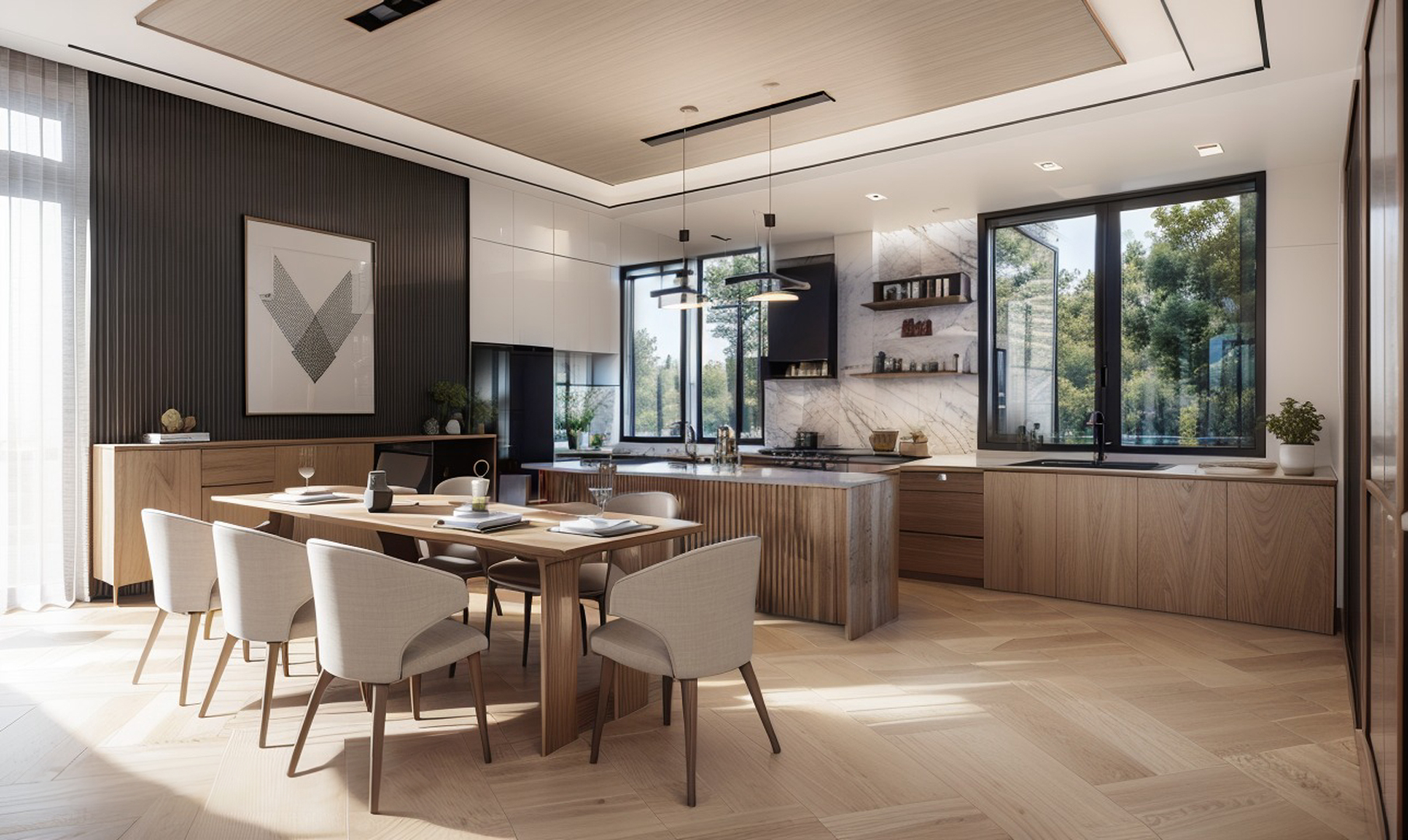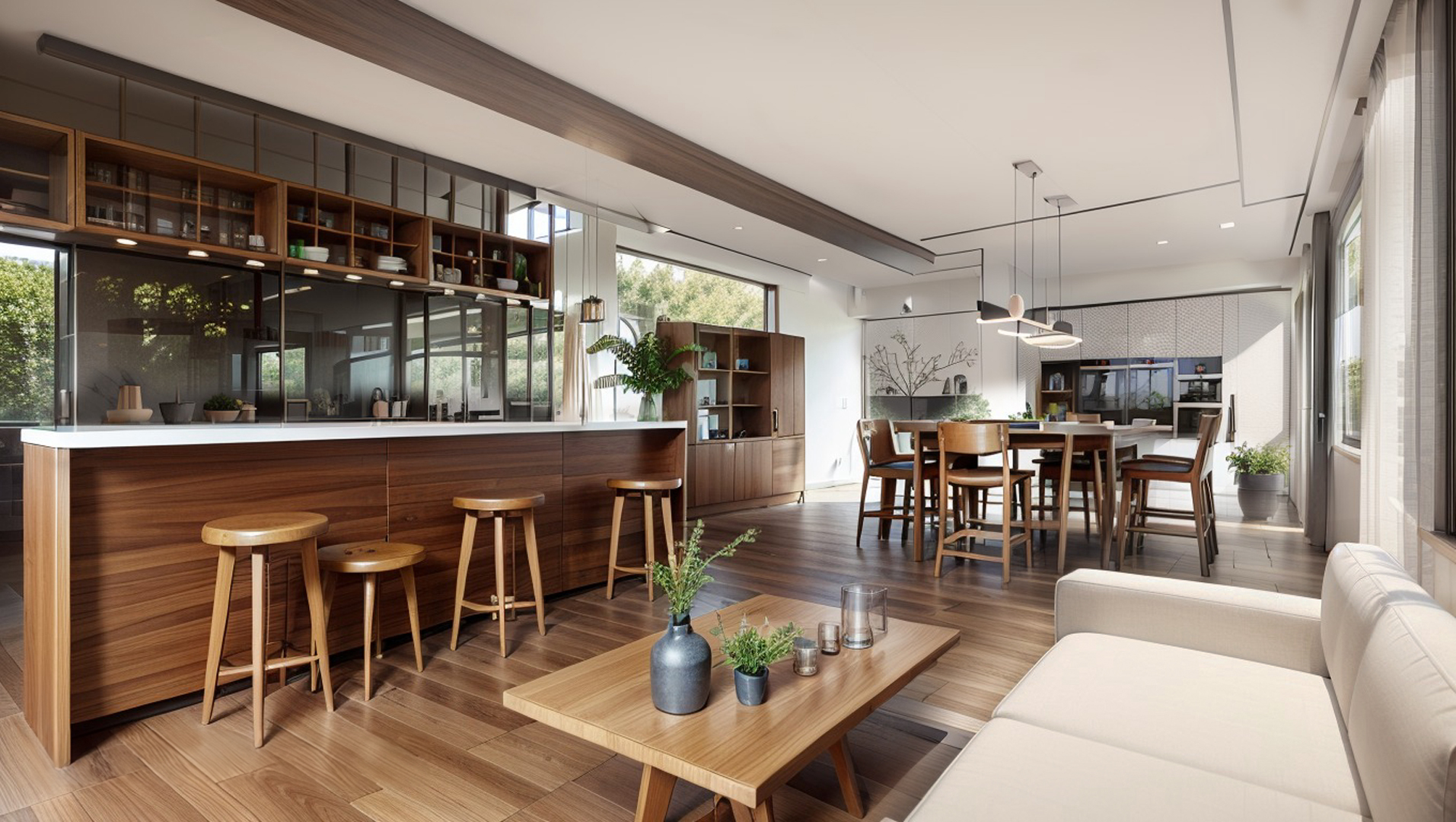 Projemizde iç mekan tasarımı, sıcak ahşap dokuları ve lüks detaylarla zenginleştirilmiş bir atmosfer sunmayı amaçladı. Her bir detay özenle seçilerek, konukların kendilerini evlerinde hissederken aynı zamanda lüks bir tatil deneyimi yaşamaları hedeflendi. İç mekan, rahatlık, estetik ve işlevselliği bir araya getirerek, yaşam alanını daha keyifli ve davetkar hale getirmek için titizlikle düşünüldü.